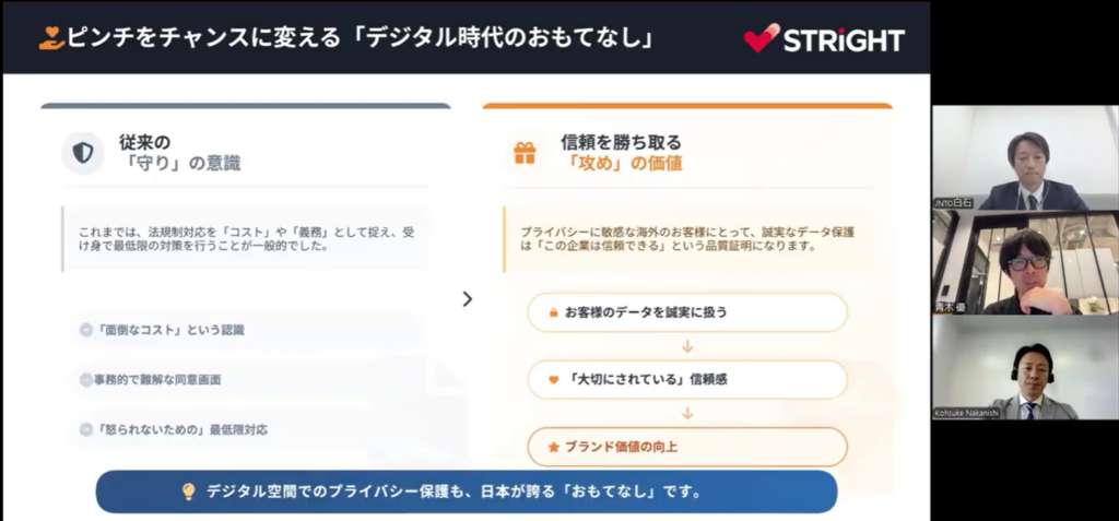 日本が世界に誇る観光立国になっていくためには、個人情報を適切に扱うことが欠かせません。プライバシーへの誠実な対応は、海外の旅行者から「この企業は信頼できる」という判断材料になる——今回のセッションを通じて3人が一致して伝えたメッセージでした。